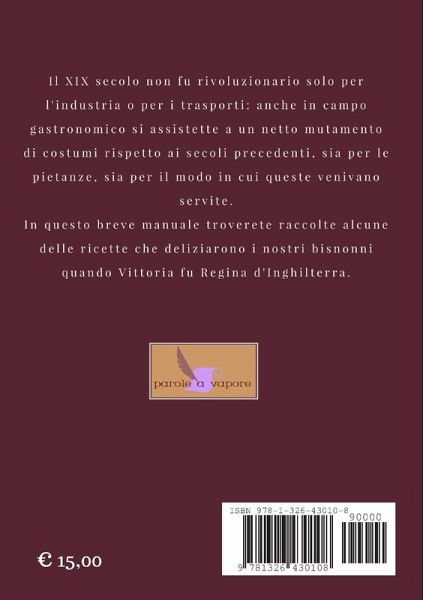 Piccolo prontuario di cucina con ricette tipiche del periodo vittoriano e risorgimentale, corredate da aneddoti storici. Tutto quel che serve per approntare in modo semplice e divertente una perfetta cena steampunk.