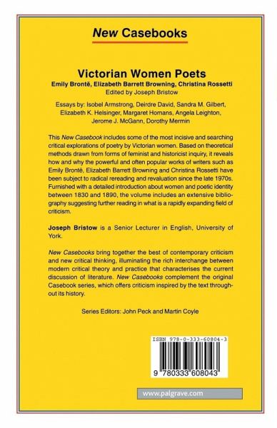 This New Casebook includes some of the most incisive and searching critical explorations of poetry by Victorian women. Based on theoretical methods drawn from forms of feminist and historicist inquiry, it reveals how and why the powerful and often popular works of writers such as Emily Bronte, Elizabeth Barrett Browning and Christina Rossetti have been subject to radical re-reading and re-valuation since the late 1970s. Furnished with a detailed introduction about women and poetic identity between 1830 and 1890, the volume includes an extensive bibliography suggesting further reading in what is a rapidly expanding field of criticism.