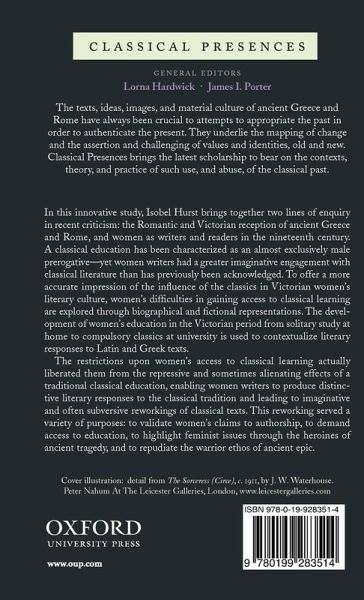 Isobel Hurst examines the role of women writers in the Victorian reception of ancient Greece and Rome, showing that they had a greater imaginative engagement with classical literature than has previously been acknowledged. The restrictions which applied to women's access to classical learning liberated them from the repressive and sometimes alienating effects of a traditional classical education. Women writers' reworkings of classical texts serve a variety of purposes: to validate women's claims to authorship, to demand access to education, to highlight feminist issues through the heroines of ancient tragedy, to repudiate the warrior ethos of ancient epic.