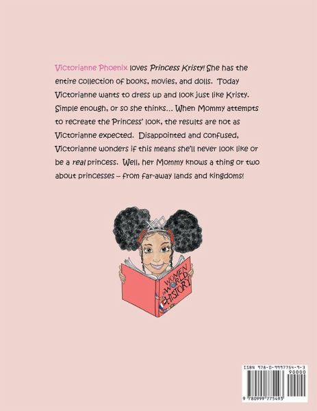 Victorianne Phoenix loves Princess Kristy! She has the entire collection of books, movies and dolls. One day. Victorianne asks her mom if she could make her hair look like Kristy's. Simple enough, or so she thinks...when Mommy attempts to recreate the Princess Kristy look the results are unexpected. Disappointed and confused, Victorianne wonders if this means she'll never look like or be a real princess. Well, Mommy knows a thing or two about princesses - from far away lands and kingdoms.