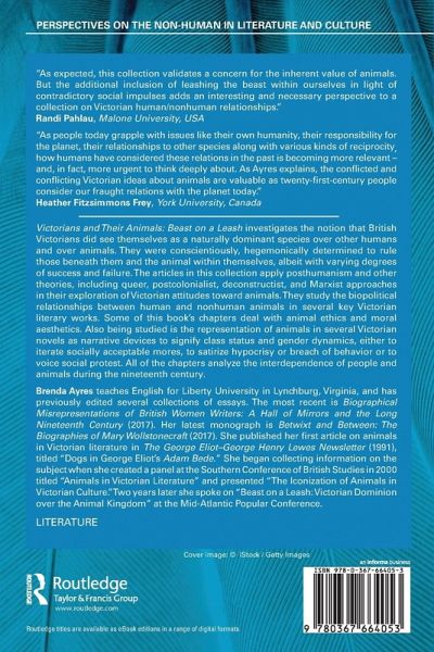 Brenda Ayres teaches English for Liberty University in Lynchburg, Virginia, and has previously edited several collections of essays. The most recent is Biographical Misrepresentations of British Women Writers: A Hall of Mirrors and the Long Nineteenth Century (2017). Her latest monograph is Betwixt and Between: The Biographies of Mary Wollstonecraft (2017). She published her first article on animals in Victorian literature in The George Eliot-George Henry Lewes Newsletter (1991), titled "Dogs in George Eliot's Adam Bede." She began collecting information on the subject when she created a panel at the Southern Conference of British Studies in 2000 titled "Animals in Victorian Literature" and presented "The Iconization of Animals in Victorian Culture." Two years later she spoke on "Beast on a Leash: Victorian Dominion over the Animal Kingdom" at the Mid-Atlantic Popular Conference.