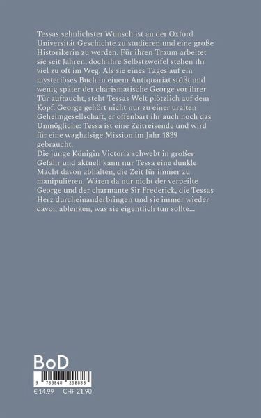 Tessas sehnlichster Wunsch ist an der Oxford Universität Geschichte zu studieren und eine große Historikerin zu werden. Für ihren Traum arbeitet sie seit Jahren, doch ihre Selbstzweifel stehen ihr viel zu oft im Weg. Als sie eines Tages auf ein mysteriöses Buch in einem Antiquariat stößt und wenig später der charismatische George vor ihrer Tür auftaucht, steht Tessas Welt plötzlich auf dem Kopf. George gehört nicht nur zu einer uralten Geheimgesellschaft, er offenbart ihr auch noch das Unmögliche: Tessa ist eine Zeitreisende und wird für eine waghalsige Mission im Jahr 1839 gebraucht, denn die junge Königin Victoria schwebt in großer Gefahr und aktuell kann nur Tessa eine dunkle Macht davon abhalten die Zeit für immer zu manipulieren. Wären da nur nicht der verpeilte George und der charmante Sir Frederick, die Tessas Herz durcheinanderbringen und sie immer wieder davon ablenken, was sie eigentlich tun sollte...