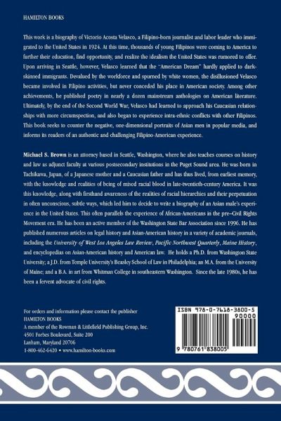 This work is a biography of Victorio Acosta Velasco, a Filipino-born journalist and labor leader who immigrated to the United States in 1924. At this time, thousands of young Filipinos were coming to America to further their education, find opportunity, and realize the idealism the U.S. was rumored to offer. Upon arriving in Seattle, however, Velasco learned that the 'American Dream' hardly applied to dark-skinned immigrants. Devalued by the workforce and spurned by white women, the disillusioned Velasco became involved in Filipino activities, but never conceded his place in American society. Amongst other achievements, he published poetry in nearly a dozen mainstream anthologies on American literature. Ultimately, by the end of the Second World War, Velasco had learned to approach his Caucasian relationships with more circumspection, and also began to experience intra-ethnic conflicts with other Filipinos. This book seeks to counter the negative, one-dimensional portraits of Asian men in popular media, and informs its readers of an authentic and challenging Filipino-American experience.