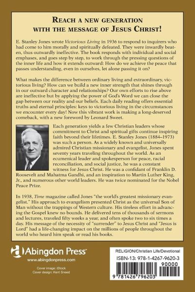 E. Stanley Jones wrote Victorious Living in 1936 to respond to inquirers who had come to him morally and spiritually defeated. They were inwardly beaten, thus outwardly ineffective. The book responds with individual and social emphases, and goes step by step, as if on a ladder, to work through the pressing questions of the inner life and how it extends outward: How do we achieve a life evidencing the peace that passes understanding, even in ourselves, let alone passing it on? What makes the difference between ordinary living and extraordinary, victorious living? How can we build a new inner strength that shines through in our outward character and relationships? Our own efforts to rise above are ineffective but by applying the power of God's Word we can close the gap between our reality and our beliefs. Each daily reading offers essential truths and eternal principles: keys to victorious living in the circumstances we encounter every day! Now this vibrant work is making a long deserved comeback, with a new foreword by Leonard Sweet.