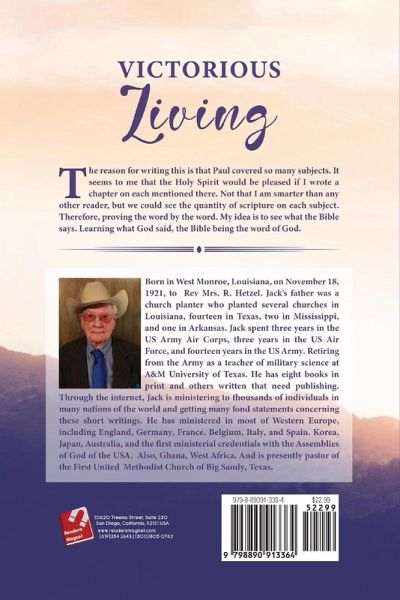 Born in West Monroe, Louisiana, on November 18, 1921, to Rev Mrs. R. Hetzel. Jack's father was a church planter who planted several churches in Louisiana, fourteen in Texas, two in Mississippi, and one in Arkansas. Jack spent three years in the US Army Air Corps, three years in the US Air Force, and fourteen years in the US Army. Retiring from the Army as a teacher of military science at A&M University of Texas. He has eight books in print and others written that need publishing. Through the internet, Jack is ministering to thousands of individuals in many nations of the world and getting many fond statements concerning these short writings. He has ministered in most of Western Europe, including England, Germany, France, Belgium, Italy, and Spain. Korea, Japan, Australia, and the first ministerial credentials with the Assemblies of God of the USA. Also, Ghana, West Africa. And is presently pastor of the First United Methodist Church of Big Sandy, Texas.