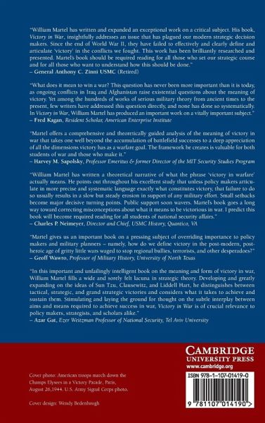 War demands that scholars and policy makers use victory in precise and coherent terms to communicate what the state seeks to achieve in war. The failure historically to define victory in consistent terms has contributed to confused debates when societies consider whether to wage war. This volume explores the development of a theoretical narrative or language of victory to help scholars and policy makers define carefully and precisely what they mean by victory in war in order to achieve a deeper understanding of victory as the foundation of strategy in the modern world.