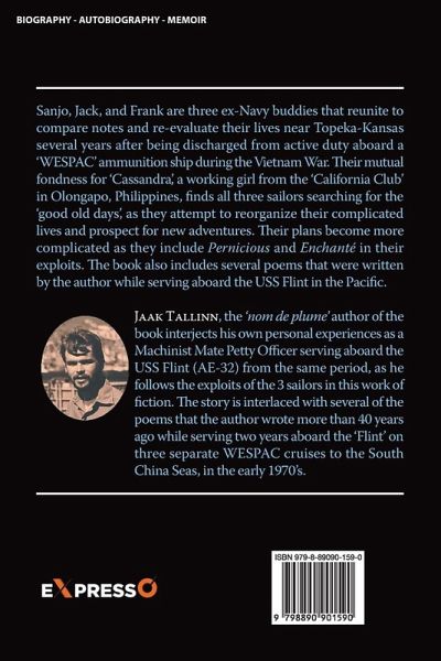 Sanjo, Jack, and Frank are three ex-Navy buddies that reunite to compare notes and re-evaluate their lives near Topeka-Kansas several years after being discharged from active duty aboard a 'WESPAC' ammunition ship during the Vietnam war. Their mutual fondness for 'Cassandra', a working girl from the 'California Club' in Olongapo, Philippines, finds all three sailors searching for the 'good old days', as they attempt to reorganize their complicated lives and prospect for new adventures. Their plans become more complicated as they include Pernicious and Enchanté in their exploits. The book also includes several poems that were written by the author while serving aboard the USS Flint in the Pacific