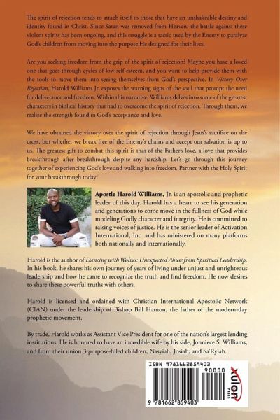 The spirit of rejection tends to attach itself to those that have an unshakeable destiny and identity found in Christ. Since Satan was removed from Heaven, the battle against these violent spirits has been ongoing, and this struggle is a tactic used by the Enemy to paralyze God's children from moving into the purpose He designed for their lives. Are you seeking freedom from the grip of the spirit of rejection? Maybe you have a loved one that goes through cycles of low self-esteem, and you want to help provide them with the tools to move them into seeing themselves from God's perspective. In Victory Over Rejection, Harold Williams Jr. exposes the warning signs of the soul that prompt the need for deliverance and freedom. Within this narrative, Williams delves into some of the greatest characters in biblical history that had to overcome the spirit of rejection. Through them, we realize the strength found in God's acceptance and love. We have obtained the victory over the spirit of rejection through Jesus's sacrifice on the cross, but whether we break free of the Enemy's chains and accept our salvation is up to us. The greatest gift to combat this spirit is that of the Father's love, a love that provides breakthrough after breakthrough despite any hardship. Let's go through this journey together of experiencing God's love and walking into freedom. Partner with the Holy Spirit for your breakthrough today! Apostle Harold Williams, Jr. is an apostolic and prophetic leader of this day. Harold has a heart to see his generation and generations to come move in the fullness of God while modeling Godly character and integrity. He is committed to raising voices of justice. He is the senior leader of Activation International, Inc. and has ministered on many platforms both nationally and internationally. Harold is the author of Dancing with Wolves: Unexpected Abuse from Spiritual Leadership. In his book, he shares his own journey of years of living under unjust and unrighteous leadership and how he came to recognize the truth and find freedom. He now desires to share these powerful truths with others. Harold is licensed and ordained with Christian International Apostolic Network (CIAN) under the leadership of Bishop Bill Hamon, the father of the modern-day prophetic movement. By trade, Harold works as Assistant Vice President for one of the nation's largest lending institutions. He is honored to have an incredible wife by his side, Jonniece S. Williams, and from their union 3 purpose-filled children, Nasyiah, Josiah, and Sa'Ryiah.