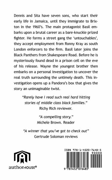 Dennis and Sita have seven sons, who start their early life in Jamaica, until they immigrate to Brixton in the1960's. The main protagonist Basil embarks upon a brutal career as a bare- knuckle prized fighter. He forms a street gang the 'untouchables', they accept employment from Ronny Kray as south London enforcers to the firm. Basil later joins the Black Panthers from Shakespeare Road. Before he is mysteriously found dead in a prison cell on the eve of his release. Wayne the youngest brother then embarks on a personal investigation to uncover the real truth surrounding the untimely death. This investigation opens up a Pandora's box that gives the story an unimaginable twist.