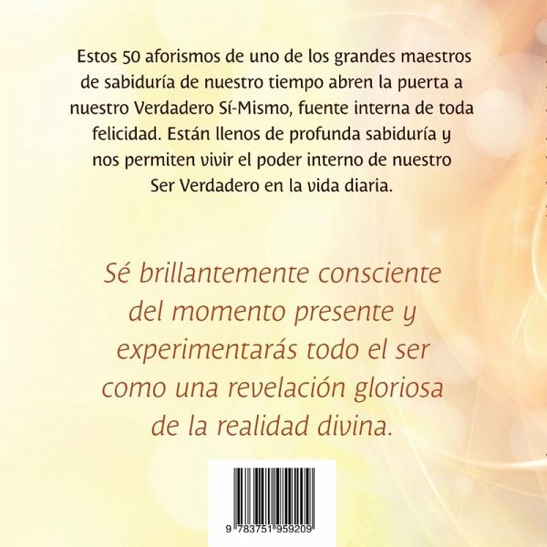 Estos 50 aforismos de uno de los grandes maestros de sabiduría de nuestro tiempo abren la puerta a nuestro Verdadero Sí-Mismo, fuente interna de toda felicidad. Están llenos de profunda sabiduría y nos permiten vivir el poder interno de nuestro Ser Verdadero en la vida diaria. Sé brillantemente consciente del momento presente y experimentarás todo el ser como una revelación gloriosa de la realidad divina.