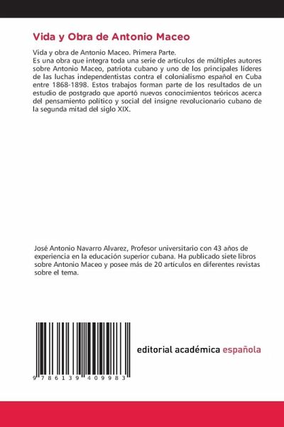 Vida y obra de Antonio Maceo. Primera Parte. Es una obra que integra toda una serie de artículos de múltiples autores sobre Antonio Maceo, patriota cubano y uno de los principales líderes de las luchas independentistas contra el colonialismo español en Cuba entre 1868-1898. Estos trabajos forman parte de los resultados de un estudio de postgrado que aportó nuevos conocimientos teóricos acerca del pensamiento político y social del insigne revolucionario cubano de la segunda mitad del siglo XIX.
