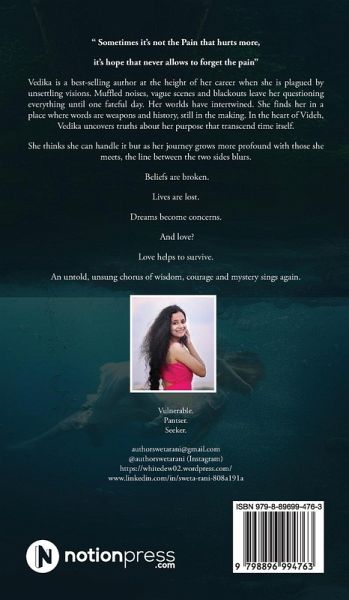" Sometimes it's not the Pain that hurts more, it's hope that never allows to forget the pain" Vedika is a best-selling author at the height of her career when she is plagued by unsettling visions. Muffled noises, vague scenes and blackouts leave her questioning everything until one fateful day. Her worlds have intertwined. She finds her in a place where words are weapons and history, still in the making. In the heart of Videh, Vedika uncovers truths about her purpose that transcend time itself. She thinks she can handle it but as her journey grows more profound with those she meets, the line between the two sides blurs. Beliefs are broken. Lives are lost. Dreams become concerns. And love? Love helps to survive. An untold, unsung chorus of wisdom, courage and mystery sings again.