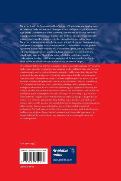 Closed Circuit TeleVision (CCTV) cameras have been increasingly deployed pervasively in public spaces including retail centres and shopping malls. Intelligent video analytics aims to automatically analyze content of massive amount of public space video data and has been one of the most active areas of computer vision research in the last two decades. Current focus of video analytics research has been largely on detecting alarm events and abnormal behaviours for public safety and security applications. However, increasingly CCTV installations have also been exploited for gathering and analyzing business intelligence information, in order to enhance marketing and operational efficiency. For example, in retail environments, surveillance cameras can be utilised to collect statistical information about shopping behaviour and preference for marketing (e.g., how many people entered a shop; how many females/males or which age groups of people showed interests to a particular product; howlong did they stay in the shop; and what are the frequent paths), and to measure operational efficiency for improving customer experience. Video analytics has the enormous potential for non-security oriented commercial applications. This book presents the latest developments on video analytics for business intelligence applications. It provides both academic and commercial practitioners an understanding of the state-of-the-art and a resource for potential applications and successful practice.