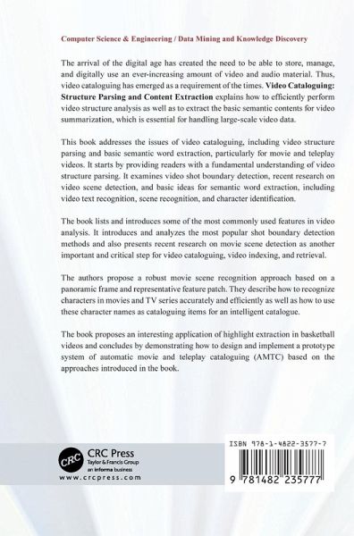 Introduction. Visual Features Extraction. Accelerating Shot Boundary Detection. Key Frame Extraction. Multimodality Movie Scene Detection. Video Text Detection and Recognition. ''Where" Entity: Video Scene Recognition. ''Who" Entity: Character Identification. Audiovisual Information-Based Highlight Extraction. Demo System of Automatic Movie or Teleplay Cataloguing. References. Index.