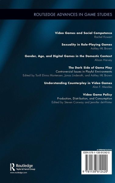 Introduction Steven Conway & Jennifer deWinter Section I: Intellectual Property, Privacy, and Copyright 1. Laws of the Game: Intellectual Property in the Video Game Industry Mark Methenitis 2. Digital Locks, Labor, and Play in Canada's Copyright Policy: Filtering Power through Configurations of Game Development Owen Livermore 3. The Princess Doesn't Leave the Castle: How Nintendo's WiiWare Imprisons Indie Game Design Theo Plothe 4. Policies, Terms of Service, and Social Networking Games Stephanie Vie Section II: Rating Systems and Cultural Politics 5. E(SRB) Is for Everyone: Game Ratings and the Practice of Content Evaluation Judd Ethan Ruggill and Ken S. McAllister 6. Games for Grown-Ups?: An Historical Account of the Australian Classification System Steven Conway and Laura M. Crawford 7. Rockstar versus Australia Mark Finn 8. Play Britannia: The Development of U.K. Video Game Policy Ren Reynolds Section III: Violence in Video Games 9. Re-conceptualizing Game Violence: Who Is Being Protected and from What? Gareth Schott and Frans Mäyrä 10. Playing Around with Causes of Violent Crime: Violent Video Games as a Diversion from the Policy Challenges Involved in Understanding and Reducing Violent Crime James D. Ivory and Adrienne Holz Ivory 11. Banning Violent Video Games in Switzerland: A Public Problem Going Unnoticed Michael Perret 12. Toxic Gamer Culture, Corporate Regulation, and Standards of Behavior among Players of Online Games Thorsten Busch, Kelly Boudreau, and Mia Consalvo Section IV: Politics and Regulations 13. The Right to Play in the Digital Era Tom Apperley 14. Against the Arcade: Video Gaming Regulation and the Legacy of Pinball Carly A. Kocurek 15. Curt Schilling's Gold Coins: Lessons for Creative Industry Policy in Light of the 38 Studios Collapse Randy Nichols 16. The Ban on Gaming Consoles in China: Protecting National Culture, Morals, and Industry within an International Regulatory Framework Bjarke Liboriussen, Andrew White, and Dan Wang 17. Regulating Rape: The Case of RapeLay, Domestic Markets, International Outrage, and Cultural Imperialism Jennifer deWinter Afterword Ashley S. Lipson