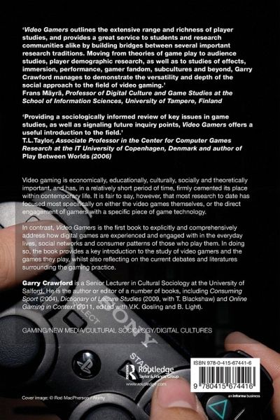 "'Video Gamers' outlines the extensive range and richness of player studies, and provides great service to students and research community alike by building bridges between several important research traditions. Moving from theories of gameplay to audience studies, player demographic research, as well as to studies of effects, immersion, performance, gamer fandom, subcultures, and beyond, Garry Crawford manages to demonstrate the versatility and depth of the social approach into the field of video gaming." - Frans Mäyrä, Professor of Digital Culture & Game Studies, University of Tampere, Finland