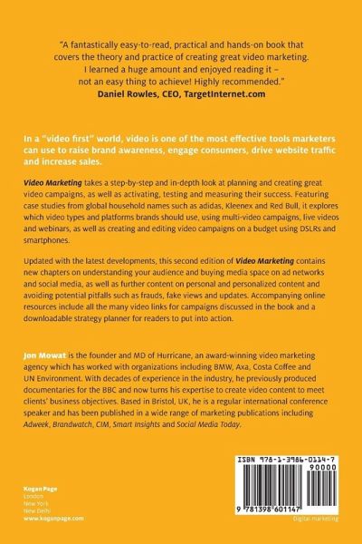 Section ONE: Video marketing strategy An introduction; Chapter 01: What is video marketing?; Chapter 02: Why video marketing works; Chapter 03: Understand your audience; Chapter 04: Video types and platforms; Section TWO: Creating great videos; Chapter 05: The basics of video marketing; Chapter 06: Planning effective video campaigns; Chapter 07: Storytelling and creative that changes behaviour; Chapter 08: Activation, measurement and testing; Chapter 09: Buying media space on ad networks and social media; Chapter 10: The dark underbelly of video advertising How to avoid losing money; Section THREE: DIY video projects; Chapter 11: Filming and editing; Chapter 12: Filming on a smartphone and DSLRs; Section FOUR: Creating effective video campaigns; Chapter 13: Steps 1 and 2 Where your brand content is now and setting goals; Chapter 14: Step 3 Content planning and programming strategy; Chapter 15: Step 4 Building the perfect content hub; Chapter 16: Step 5 Creating high volume video content And making it easy; Chapter 17: Step 6 Multi video campaign activation and testing (how to grow ROI)