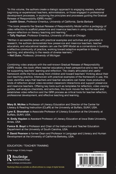 Combining video analysis with the well-known Gradual Release of Responsibility (GRR) model, this book offers teacher educators a fresh perspective and a new tool for supporting teachers' learning and reflection. The clearly articulated and useful framework shifts the focus away from children and toward teachers' thinking about their own teaching practice. Interwoven with practical examples of the framework in use, this book identifies ways that teachers and teacher educators can foster more productive kinds of reflection about video-recorded classroom interactions and support preservice and inservice teachers. Offering key tools such as templates for reflection, video viewing guides, self-analysis checklists, and activities, this book moves the field forward and establishes video reflection and the GRR process as critical tools for teacher reflection, professional development, and effective teaching and learning.