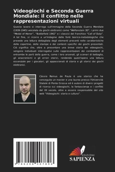 Questo lavoro si interroga sull'immagine della Seconda Guerra Mondiale (1939-1945) veicolata da giochi elettronici come "Wolfenstein 3D", i primi due "Medal of Honor", "Battlefield 1942" e i classici del franchise "Call of Duty". A tal fine, si ricorre a un'indagine delle fonti teorico-metodologiche che prevede una lettura dettagliata degli elementi presenti nelle caratteristiche delle copertine, delle stampe e dei contesti specifici dei giochi presentati. Ciò significa che, oltre a presentare una breve storia dei videogiochi, vengono individuati interrogativi sulle rappresentazioni dei combattenti di entrambe le parti della guerra, come i loro arsenali, gli scenari di battaglia, gli anacronismi e gli errori storici, rendendo quest'opera una lettura essenziale per i giocatori, gli appassionati di storia e gli storici dei giochi elettronici.