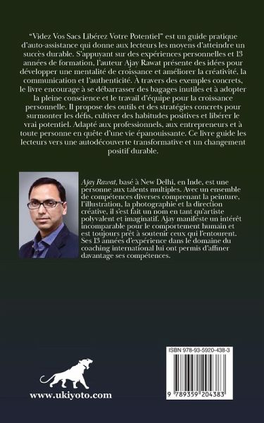 "Videz Vos Sacs Libérez Votre Potentiel" est un guide pratique d'auto-assistance qui donne aux lecteurs les moyens d'atteindre un succès durable. S'appuyant sur des expériences personnelles et 13 années de formation, l'auteur Ajay Rawat présente des idées pour développer une mentalité de croissance et améliorer la créativité, la communication et l'authenticité. À travers des exemples concrets, le livre encourage à se débarrasser des bagages inutiles et à adopter la pleine conscience et le travail d'équipe pour la croissance personnelle. Il propose des outils et des stratégies concrets pour surmonter les défis, cultiver des habitudes positives et libérer le vrai potentiel. Adapté aux professionnels, aux entrepreneurs et à toute personne en quête d'une vie épanouissante. Ce livre guide les lecteurs vers une autodécouverte transformative et un changement positif durable.