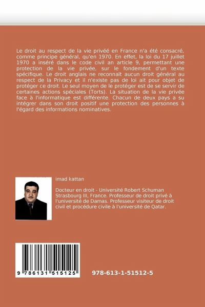Le droit au respect de la vie privéé en France n'a été consacré, comme principe général, qu'en 1970. En effet, la loi du 17 juillet 1970 a inséré dans le code civil an article 9, permettant une protection de la vie privée, sur le fondement d'un texte spécifique. Le droit anglais ne reconnaït aucun droit général au respect de la Privacy et il n'existe pas de loi ait pour objet de protéger ce droit. Le seul moyen de le protéger est de se servir de certaines actions spéciales (Torts). La situation de la vie privée face à l'informatique est différente. Chacun de deux pays a su intégrer dans son droit positif une protection des personnes à l'égard des informations nominatives.