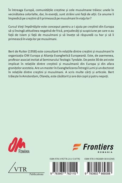 În întreaga Europ¿, comunit¿ile cre¿ne ¿i cele musulmane tr¿iesc unele în vecin¿tatea celorlalte, dar, în esen¿, sunt str¿ini unii fä de alii. Ce anume îi împiedic¿ pe cre¿ni s¿ îi primeasc¿ pe musulmani în viäa lor? Cursul este Vie¿i împ¿rt¿¿ite conceput pentru a-i ajuta pe cre¿nii din Europa s¿-¿i înving¿ atudinea negav¿ de fric¿, prejudec¿¿i ¿i suspiciune pe care o au fä de Islam ¿i fä de musulmani ¿i s¿ învee s¿ r¿spund¿ cu har ¿i s¿ îi primeasc¿ în viäa lor pe musulmani.