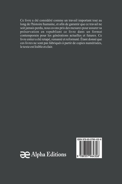 Vieilles Histoires du Pays Breton, un livre classique, a été considéré comme important tout au long de l'histoire de l'humanité, et pour que cet ouvrage ne soit jamais oublié, chez Alpha Editions, nous avons fait des efforts pour sa préservation en rééditant ce livre dans un format moderne pour les générations présentes et futures. Tout ce livre a été reformaté, retapé et conçu. Ces livres ne sont pas constitués de copies numérisées de leur ¿uvre originale et le texte est donc clair et lisible.