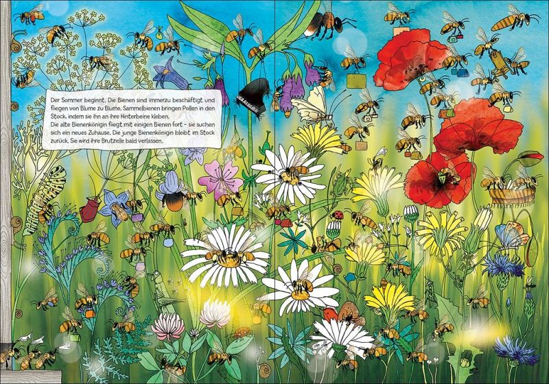 "Dieses detailreich illustrierte Sach-Wimmelbuch zeigt anschaulich, welche Aufgaben Bienen in der Natur haben und wieso sie für uns so wichtig sind." Mainova "Wunderschöne, leicht abstrakt anmutende und vor allem wimmelige Illustrationen treffen auf wirklich spannendes und kindgerecht erklärtes Sachwissen. Ein spannendes und nachhaltiges Buch für alle Bienenfans." lese_sessel, 08.05.2023 "Ein tolles Buch zur Förderung der Konzentration und zur Erweiterung des Wortschatzes." minibandme "Es gibt so viel zu entdecken für die Kleinen, es entstehen viele gute Gespräche und die Neugierde ist absolut geweckt - für uns ist das Buch absolut empfehlenswert." ellens_buchtisch