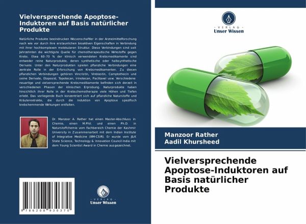 Natürliche Produkte beeindrucken Wissenschaftler in der Arzneimittelforschung nach wie vor durch ihre erstaunlichen bioaktiven Eigenschaften in Verbindung mit ihrer hochkomplexen molekularen Struktur. Diese Verbindungen sind seit Jahrzehnten die wichtigste Quelle für chemotherapeutische Wirkstoffe gegen Krebs. Etwa 60-70 % der klinisch verwendeten Krebsmedikamente sind entweder reine Naturprodukte, deren synthetische oder halbsynthetische Derivate. Unter den Naturprodukten spielen pflanzliche Verbindungen eine zentrale Rolle in der Erforschung von Krebsmedikamenten. Zu diesen pflanzlichen Verbindungen gehören Vincristin, Vinblastin, Camptothecin und seine Derivate, Etoposid, Topotecan, Irinotecan, Paclitaxel usw. Verschiedene neuartige und vielversprechende Krebsmedikamente befinden sich derzeit in verschiedenen Phasen der klinischen Erprobung. Naturprodukte haben hinsichtlich ihrer Rolle in der Krebschemotherapie viele Höhen und Tiefen erlebt. Das vorliegende Buch konzentriert sich auf pflanzliche Naturstoffe und Kräuterextrakte, die durch die Induktion von Apoptose spezifisch krebshemmende Wirkungen entfalten.