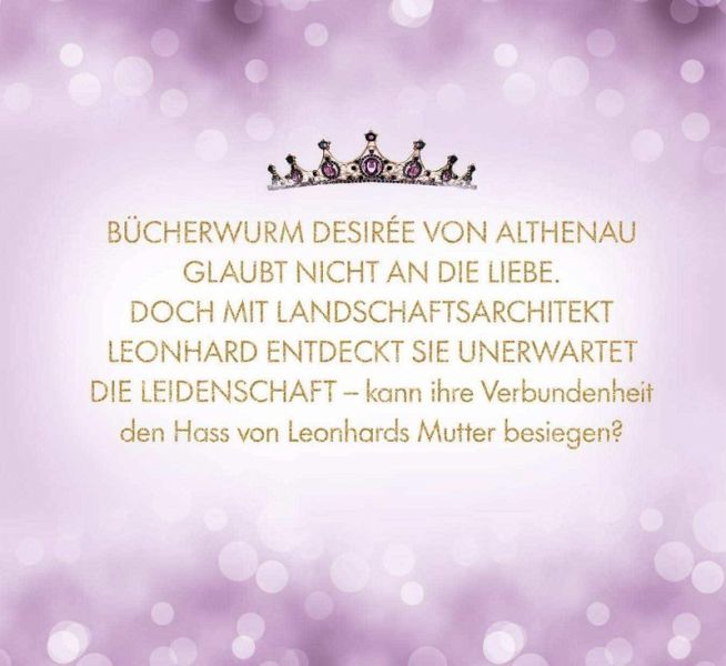 Desirée, die jüngste Tochter der Familie von Althenau, flüchtet sich am liebsten in Bücher und fremde Welten. Das Thema Ehe geht sie pragmatisch an, sie erwartet keine tiefen Gefühle oder sinnlichen Nächte. Als sie Leonhard, einen Gartenarchitekten, trifft, entfacht eine leidenschaftliche Liebe, die Desirée im Verborgenen genießt und die ihre Meinung zur Ehe verändern. Doch Leonhards Mutter stellt sich entschlossen gegen die Verbindung. Zudem taucht ein mysteriöser Mann auf, der zu allem bereit ist und Desirée und ihre gesamte Familie mit aller Macht in den Abgrund ziehen will. Wird sich Leonhard für Desirée gegen seine Familie wenden? Und kann sie die Schatten der Vergangenheit überwinden, bevor alles zu spät ist?