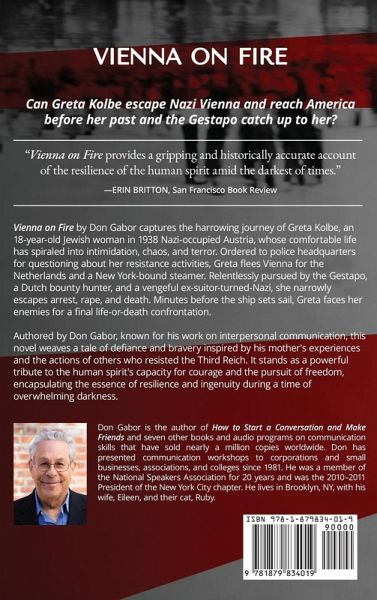 Don Gabor is the son of a holocaust survivor, but he didn't uncover his mother's family secret until 1997 during a trip to Austria. That's when he was inspired to write his first solo novel, Vienna on Fire: A WWII Story of Survival. Don is also the author of How to Start a Conversation and Make Friends, plus other books and audio programs on communication skills. Since 1981, he has been published by Simon and Schuster, Crown/Random House, McGraw-Hill Education, and others. His titles have also been translated into fifteen languages and have sold twenty-nine foreign rights. Don Gabor's books have been featured in dozens of traditional and social media publications including 60 Minutes: A Few Minutes with Andy Rooney, The New York Times, The Wall Street Journal, and others. The New Yorker called Don "a gifted conversationalist."Don has presented workshops to corporations, associations, small businesses, and colleges. Don was also a member of the National Speakers Association (NSA) for twenty years and was the 2010-2011 president of the NSA NYC chapter. An avid history buff, urban gardener, and guitarist, he lives in Brooklyn, New York, with his wife, Eileen, and their cat, Ruby.