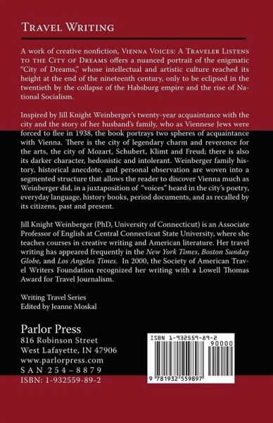 Description A work of creative nonfi ction, VIENNA VOICES: A TRAVELER LISTENS TO THE CITY OF DREAMS offers a nuanced portrait of the enigmatic "City of Dreams," whose intellectual and artistic culture reached its height at the end of the nineteenth century, only to be eclipsed in the twentieth by the collapse of the Habsburg empire and the rise of National Socialism. Inspired by Jill Knight Weinberger's twenty-year acquaintance with the city and the story of her husband's family, who as Viennese Jews were forced to fl ee in 1938, the book portrays two spheres of acquaintance with Vienna. There is the city of legendary charm and reverence for the arts, the city of Mozart, Schubert, Klimt and Freud; there is also its darker character, hedonistic and intolerant. Weinberger family history, historical anecdote, and personal observation are woven into a segmented structure that allows the reader to discover Vienna much as Weinberger did, in a juxtaposition of "voices" heard in the city's poetry, everyday language, history books, period documents, and as recalled by its citizens, past and present. About the Author Jill Knight Weinberger (PhD, University of Connecticut) is an Associate Professor of English at Central Connecticut State University, where she teaches courses in creative writing and American literature. Her travel writing has appeared frequently in the New York Times, Boston Sunday Globe, and Los Angeles Times. In 2000, the Society of American Travel Writers Foundation recognized her writing with a Lowell Thomas Award for Travel Journalism. Series: Writing Travel Edited by Jeanne Moskal