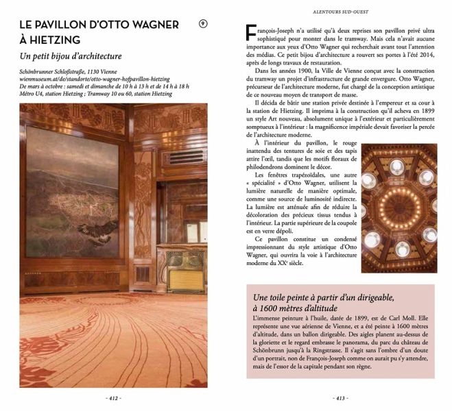 Un sublime palais privé qui se visite sur réservation, une momievde crocodile dans une bibliothèque, une maison en chocolat,un plafond alchimique à Schönbrunn, une des plus belles pharmacies au monde qui se visite de façon exceptionnelle, unesuperbe église Art nouveau oubliée, la tombe d'un poisson qui se serait converti au judaïsme, un musée du jazz dans des toilettespubliques, une décharge publique qui se visite comme un musée le plus vieil orgue de Vienne caché derrière une peinture, uneimpératrice en habit de nonne, le mystère du symbole 05, un sexe masculin sculpté discrètement sur la cathédrale de Vienne, unsurprenant musée privé du billard, un incroyable bouquet où chaque fleur se compose en réalité de plusieurs ailes de papillon,une source d'eau qui permet de voir les chiffres du loto pendant une minute, une extraordinaire annexe souterraine du camp deMauthausen où l'on construisit le premier avion à réaction du monde, un love hotel historique de très grand charme...Loin des foules et des clichés habituels, Vienne garde encore des trésors bien cachés qu'elle ne révèle qu'aux habitants et auxvoyageurs qui savent sortir des sentiers battus.Un guide indispensable pour ceux qui pensaient bien connaître Vienne ou pour ceux qui souhaitent découvrir l'autre visage dela ville.