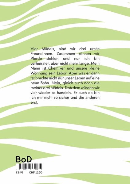 Vier Mädels, sind wir drei uralte Freundinnen. Zusammen können wir Pferde stehlen und nur ich bin verheiratet, aber nicht mehr lange. Mein Mann ist Chemiker und unsere kleine Wohnung sein Labor. Aber was er dann tat brachte nicht nur unser Leben auf eine neue Bahn. Nein, gleich auch noch die meiner drei Mädels. Trotzdem würden wir vier wieder so handeln. Er auch da bin ich mir nicht so sicher und die anderen erst.
