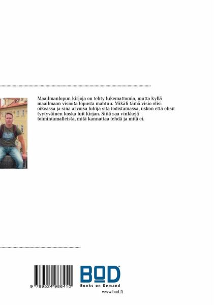 Maailmanlopun kirjoja on tehty lukemattomia, mutta kyllä maailmaan visioita lopusta mahtuu. Mikäli tämä visio olisi oikeassa ja sinä arvoisa lukija sitä todistamassa, uskon että olisit tyytyväinen koska luit kirjan. Siitä saa vinkkejä toimintamalleista, mitä kannattaa tehdä ja mitä ei. Tarinan tarkoitus on tavoittaa muutkin lukijat kuin science fiction ahmijat. Kirjoittaja on epätoivoisesti pyrkinyt löytämään myös naisellisen näkökulman ja tunteet kaaoksen ja epätoivon keskellä. Pelko, rakkaus ja selviytyminen ovat kirjan kantavia teemoja. Kaikki kirjan paikat, kadut, puistot ym. ovat olemassa myös meidän todellisuudessamme.