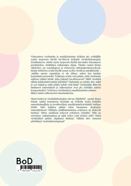 Valmentava viestinnän ja markkinoinnin työkirja pk-yrittäjälle syntyi tarpeesta löytää tarvittavat työkalut viestintästrategian työstämiseen, mutta myös tarpeesta löytää luovuutta tekemiseen perinteisten, totuttujen ratkaisujen sijaan. Tämän vuoksi kirjan viitekehys on coachingissa ja erityisesti ratkaisukeskeisyydessä. Kirjan tehtävien avulla löydät oman tyylisi viestiä ja markkinoida - mitään suoria vastauksia ei ole siihen, miten itse kunkin kannattaisi menetellä. Työkirjan avulla voit pohtia, mitä viestinnän suhteen pitäisi tehdä, jotta pääsisit tavoitteeseesi? Miltä viestintä silloin kuulostaisi/tuntui/näyttäisi? Tärkeintä on pohtia sitä, mikä jo nyt toimii ja mitä pitäisi tehdä vielä lisää? Viestintään liittyvät luutuneet uskomukset ja näkemykset ovat pk-yrittäjän suurin kompastuskivi. Yrityksen viestinnän ja markkinoinnin muutos lähtee omien näkemysten haastamisesta. Monet kokevat viestintästrategian olevan ylähöttöä, sanoja ilman tekoja, mutta tosiasiassa strategia on työkalu, jonka pohjalta suunnitelmallista ja tavoitteellista markkinointiviestintää voidaan tehdä. Mitä kaikkea pitäisi ottaa huomioon strategian suunnittelussa? Millaista sisällöntuotantoa yrityksen on järkevää tuottaa? Miten asiakkaat kokevat yrityksen brändin? Mitä on retorinen vaikuttaminen ja mitä yritys voisi hyötyä siitä? Mistä viestintätyö pitäisi ylipäänsä aloittaa? Milloin olet viimeksi päivittänyt viestintästrategiaasi?