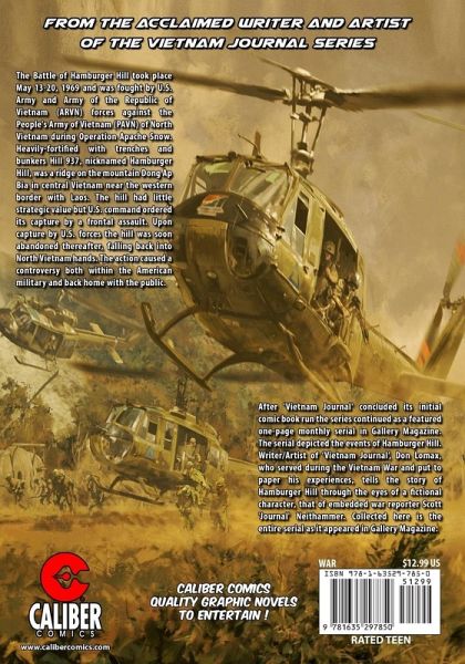 From Don Lomax, the award-winning writer and artist of the Vietnam Journal comic book series. The Battle of Hamburger Hill took place May 13-20, 1969 and was fought by U.S. Army and Army of the Republic of Vietnam (ARVN) forces against the People's Army of Vietnam (PAVN) of North Vietnam during Operation Apache Snow. Heavily-fortified with trenches and bunkers Hill 937, nicknamed Hamburger Hill, was a ridge on the mountain Dong Ap Bia in central Vietnam near the western border with Laos. The hill had little strategic value but U.S. command ordered its capture by a frontal assault. Upon capture by U.S. forces the hill was soon abandoned thereafter, falling back into North Vietnam hands. The action caused a controversy both within the American military and back home with the public. After 'Vietnam Journal' concluded its initial comic book run the series continued as a featured one-page monthly serial in Gallery Magazine. The serial depicted the events of Hamburger Hill. Writer/Artist of 'Vietnam Journal', Don Lomax, who served during the Vietnam War and put to paper his experiences, tells the story of Hamburger Hill through the eyes of a fictional character, that of embedded war reporter Scott 'Journal' Neithammer. Collected here is the entire serial as it appeared in Gallery Magazine.