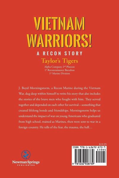 Vietnam Warriors!A Recon Story-Taylor's TigersJ. Boyd Morningstorm, a Recon Marine during the Vietnam War, dug deep within himself to write his story that also includes the stories of the brave men who fought with him. They served together and depended on each other for survival- something that created lifelong bonds and friendships. Morningstorm helps us understand the impact of war on young Americans who graduated from high school, trained as Marines, then were sent to war in a foreign country. He tells of the fear, the trauma, the hell...