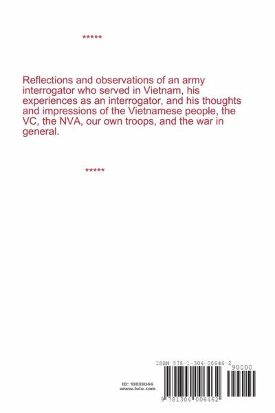 Reflections of an army interrogator in Vietnam about his experiences as an interrogator and his observations on the people, the VC, the NVA, and the war in general.