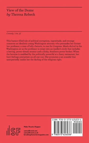 This humor-filled tale of political corruption, ingratitude, and revenge concerns an idealistic young Washington attorney who persuades her former law professor, a man of lofty rhetoric, to run for Congress. Ideals shrivel in the Washington air as the professor is swept into an insider's circle that includes a leering, power-drunk senator and a slinky, Southern power broker. When the heroine is snubbed by the politically powerful at a fancy restaurant, her hurt feelings precipitate an all-out war. She promotes a sex scandal that unexpectedly makes her the darling of the religious right.