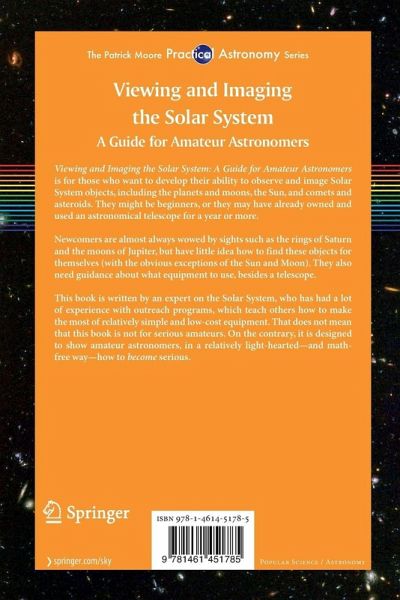 This book is written by an expert on the Solar System, who has had a lot of experience with outreach programs, which teach others how to make the most of relatively simple and low-cost equipment. That does not mean that this book is not for serious amateurs. On the contrary, it is designed to show amateur astronomers, in a relatively light-hearted-and math-free way-how to become serious.
