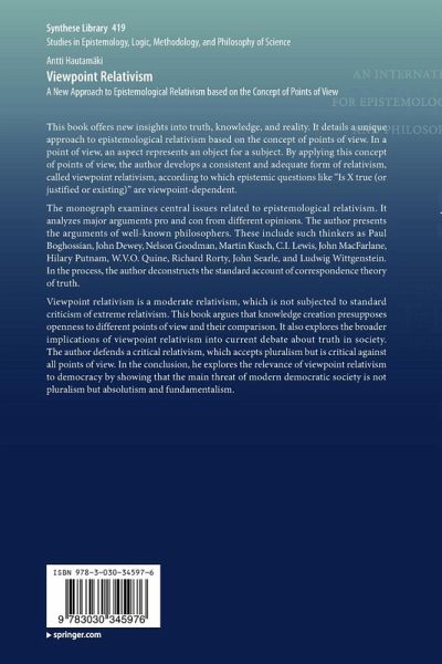 Viewpoint relativism is a moderate relativism, which is not subjected to standard criticism of extreme relativism. This book argues that knowledge creation presupposes openness to different points of view and their comparison. It also explores the broader implications of viewpoint relativism into current debate about truth in society. The author defends a critical relativism, which accepts pluralism but is critical against all points of view. In the conclusion, he explores the relevance of viewpoint relativism to democracy by showing that the main threat of modern democratic society is not pluralism but absolutism and fundamentalism.