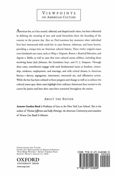 This book of twelve original essays will bring together two themes of American culture: law and race. The essays fall into four groups: cases that are essential to the history of race in America; cases that illustrate the treatment of race in American history; cases of great fame that became the trials of the century of their time; and cases that made important law. Some of the cases discussed include Amistad, Dred Scott, Plessy v. Ferguson, Scottsboro, Korematsu v. US, Brown v. Board, Loving v. Virginia, Regents v. Bakke, and OJ Simpson. All illustrate how race often determined the outcome of trials, and how trials that confront issues of racism provide a unique lens on American cultural history. Cases include African-Americans, Asian-Americans, and Caucasians. Contributors include a mix of junior and senior scholars in law schools and history departments.