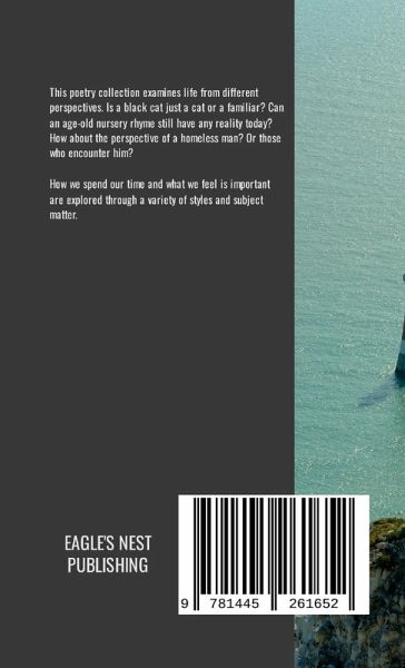 This poetry collection examines life from different perspectives. Is a black cat just a cat or a familiar? Can an age-old nursery rhyme still have any reality today? How about the perspective of a homeless man? Or those who encounter him? How we spend our time and what we feel is important are explored through a variety of styles and subject matter.
