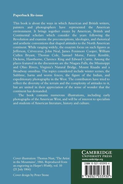 This book is about the ways American and British writers, painters and photographers have represented the American environment. It brings together essays by American, British and European scholars which consider the one hundred and twenty years following the Revolution and examine the preconceptions, ideologies, rhetorical and aesthetic conventions that shaped attitudes to the North American continent. While ranging widely, the essayists focus on such figures as Jefferson, Crevecoeur, John Neal, James Fenimore Cooper, William Cullen Bryant, Thomas Cole, Samuel Morse, Fanny Kemble, Dickens, Hawthorne, Clarence King and Edward Curtis. Amongst the places featured in the discussions are the Niagara Falls, the Mississippi and Ohio rivers, Virginia's Natural Bridge, Mount Ktaadn and a Broadway omnibus. The book contains numerous illustrations, including early photographs of the western United States, and will be of interest to specialists and students of American literature, history and culture.