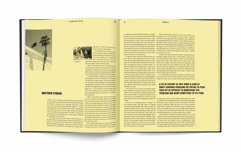 In ihrem Buch "Views On Vegas" zeigen die Fotografen Daniel Rettig und Hendrik Schneider ein Portrait der Stadt abseits gängiger Klischees. Dafür porträtierten sie Bewohner der Metropole in ihrem privaten oder beruflichen Umfeld und sprachen mit Ihnen über das Verhältnis zu Ihrem vermeintlich außergewöhnlichen Wohnort. Ergänzende Stadtansichten nehmen mit auf eine Entdeckungsreise abseits des Strips und zeigen Aufnahmen von fast malerischer Ruhe, die bewusst mit den üblichen Erwartungen brechen. Die Kombination aus Fotografien und Interviews ermöglicht ungewohnte und sehr persönliche Einblicke. "Views On Vegas" ist eine Momentaufnahme einer Stadt im permanenten Wandel - ein Buch für alle, die einen Blick hinter die Neonfassade werfen wollen!