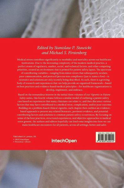 Medical errors contribute significantly to morbidity and mortality across our healthcare institutions. Due to the increasing complexity of the modern medical practice, a perfect storm of regulatory, market, social, and technical factors, and other competing priorities, created an environment that is primed for patient safety lapses. The spectrum of contributing variables - ranging from minor errors that subsequently escalate, poor communication, and protocol/process non-compliance (just to name a few) - is extensive and solutions are only recently being described. As such, there is a growing body of research and experiences that can help provide an organized framework - based on best practices and evidence-based medical principles - for healthcare organizations to develop, implement, and embrace. Based on the tremendous interest in the initial three volumes of our Vignettes in Patient Safety series, this fourth volume follows a similar model of outlining a patient safety case based on experiences that many clinicians can relate to, and then discusses various factors that may have contributed to a medical error, complication, and/or poor outcome. Building on a problem-based clinical vignette, each chapter then outlines an evidence-based approach to present any related literature, pertinent evidence, and potential contributing factors and solutions to common patient safety occurrences. By focusing on some of the best practices, structured experiences, and objective approaches to medical error genesis, the authors and editors hopefully can lend some insights into how we can make healthcare encounters for all patients, across all settings, better and safer.