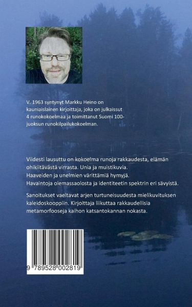 Runoja rakkaudesta, elämän ohikiitävästä virrasta. Uni- ja muistikuvia. Haaveiden ja unelmien värittämiä hymyjä. Havaintoja olemassaolosta ja identiteetin spektrin eri sävyistä. Hyppyjä arjen harmaasta mielikuvituksen kaleidoskooppiin. Mielenmaiseman metamorfooseja kaihon katsantokannan nokasta. "Sanat eivät ole vain määritelmien sementtiä, vaan sielun laulun säkeitä."