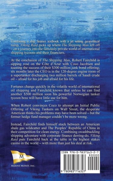 Combining ship finance with a jet setting geopolitical romp, Viking Raid picks up where The Shipping Man left off – on a journey into the famously private world of international shipping tycoons and their financiers. At the conclusion of The Shipping Man, Robert Fairchild is sipping rosé on the Côte d’Azur with Coco Jacobsen and toasting to the success of their $300 million junk bond offering; six months later the CEO is in the 120-degree engine room of a supertanker discharging two million barrels of Saudi crude oil – afraid for his job and afraid for his life. Fortunes change quickly in the volatile world of international oil shipping and Fairchild knows that unless he can find another $500 million soon his powerful Norwegian tanker tycoon boss will have little use for him. When Robert convinces Coco to attempt an Initial Public Offering of Viking Tankers on Wall Street, the desperate American thinks his problems may have been solved – but the former hedge fund manager couldn’t be more wrong. Instead, Fairchild finds himself stuck between an American shale gas wildcatter and The Peoples’ Republic of China in their competition for clean energy. Combining swashbuckling shipping adventure with corporate finance derring-do, Viking Raid puts Fairchild back at the table in the highest stakes casino in the world – with more than just his deal at risk.