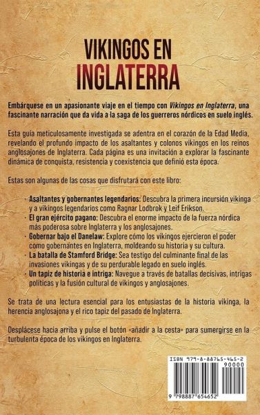 Embárquese en un apasionante viaje en el tiempo con Vikingos en Inglaterra, una fascinante narración que da vida a la saga de los guerreros nórdicos en suelo inglés. Esta guía meticulosamente investigada se adentra en el corazón de la Edad Media, revelando el profundo impacto de los asaltantes y colonos vikingos en los reinos anglosajones de Inglaterra. Cada página es una invitación a explorar la fascinante dinámica de conquista, resistencia y coexistencia que definió esta época. Estas son algunas de las cosas que disfrutará con este libro: Asaltantes y gobernantes legendarios: Descubra la primera incursión vikinga y a vikingos legendarios como Ragnar Lodbrok y Leif Erikson. El gran ejército pagano: Descubra el enorme impacto de la fuerza nórdica más poderosa sobre Inglaterra y los anglosajones. Gobernar bajo el Danelaw: Explore cómo los vikingos ejercieron el poder como gobernantes en Inglaterra, moldeando su historia y su cultura. La batalla de Stamford Bridge: Sea testigo del culminante final de las invasiones vikingas y de su perdurable legado en suelo inglés. Un tapiz de historia e intriga: Navegue a través de batallas decisivas, intrigas políticas y la fusión cultural de vikingos y anglosajones. Se trata de una lectura esencial para los entusiastas de la historia vikinga, la herencia anglosajona y el rico tapiz del pasado de Inglaterra.